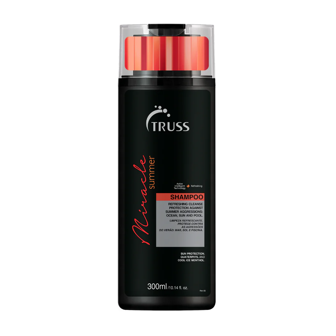 Para aprovechar el verano y mantener el cabello lindo y saludable, el champú Miracle Summer protege contra las agresiones del verano(mar, sol y piscina), actuando contra el desteñido del color y con protección para los rayos UV. Promueve la sensación de limpieza, suavidad y vitalidad.