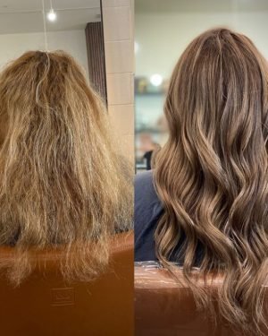 La reconstrucción intensiva es un tratamiento profundo que regenera la estructura interna del cabello, devolviendo fuerza, elasticidad y cuerpo. Es ideal para melenas frágiles, con puntas abiertas o tras decoloraciones, alisados u otros procesos agresivos.